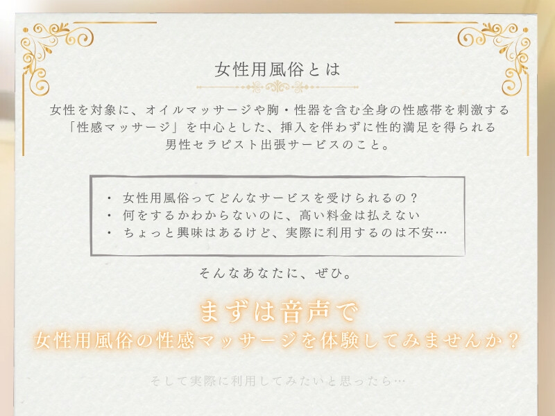 【リアルセラピスト】女性用風俗の性感マッサージはいかがですか?