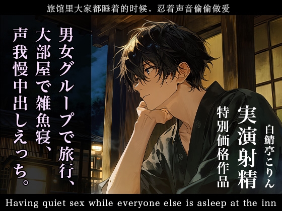 特別価格作品です!ドキドキの、男女旅行での大部屋雑魚寝からの布団の中での声我慢中出しえっちです!臨場感と背徳感あふれるえっちをお楽しみくださいませ!