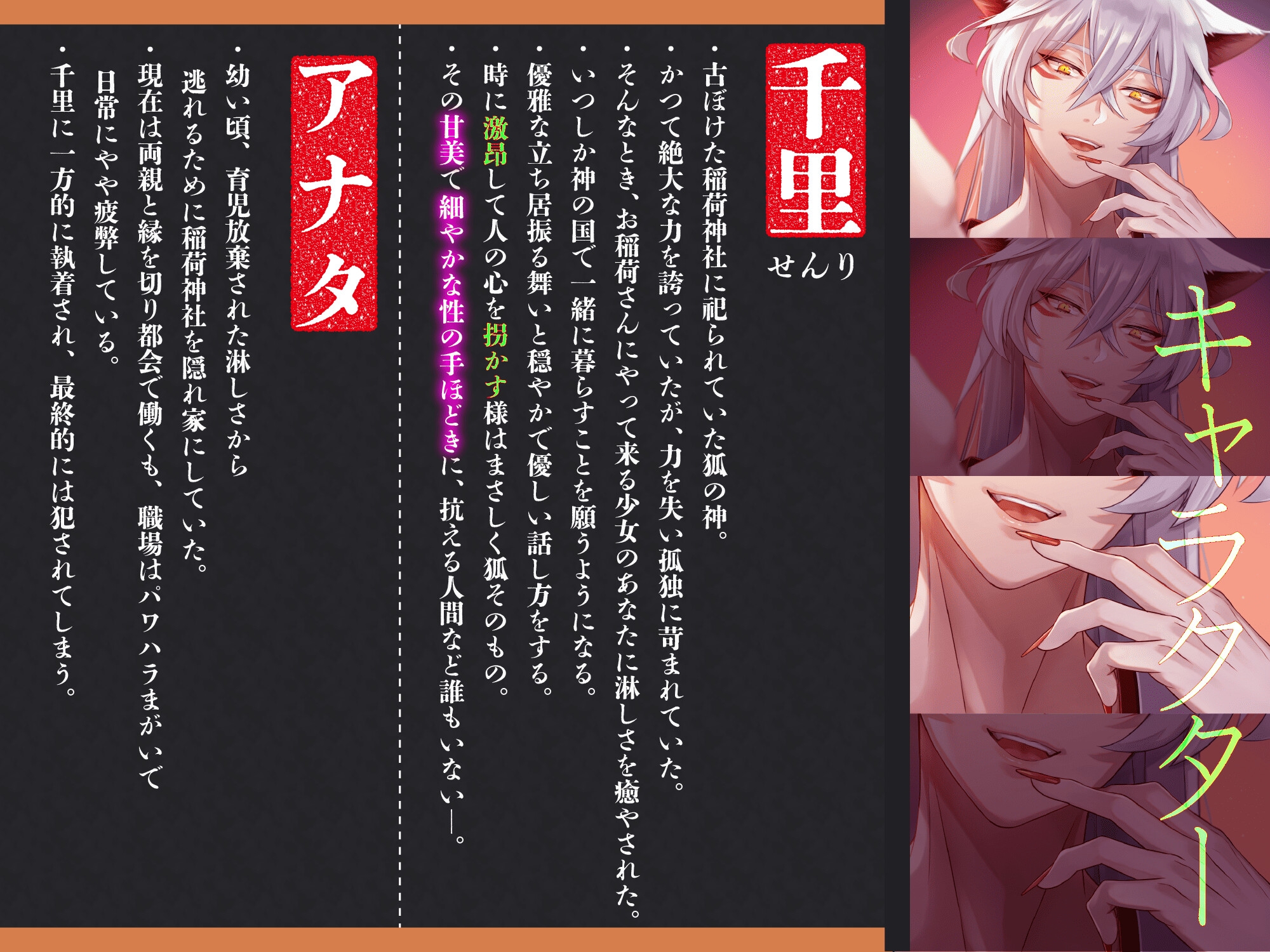 [プロローグ:幼少期、アナタはお狐様と出会う。社会人となったアナタは日常に疲れたところをお狐様に保護され、寵愛を受ける――]