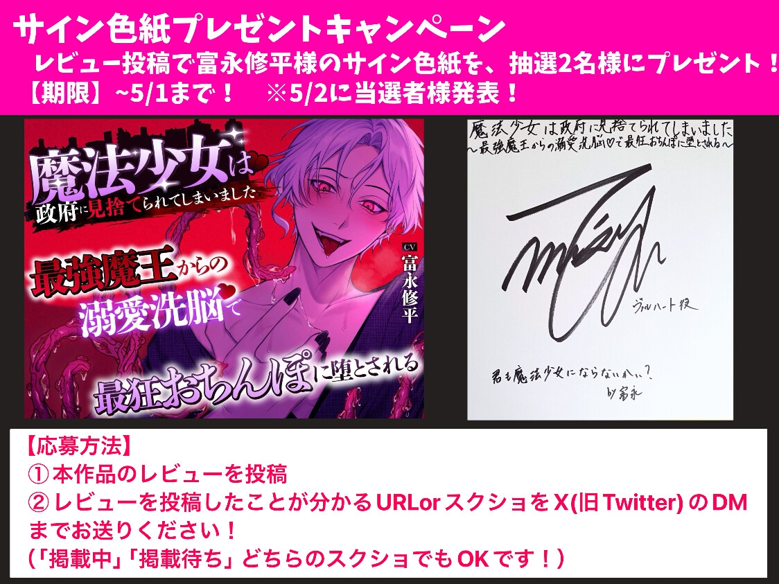 Xにて、本作品のレビューをしていただいた方の中から抽選2名様に、富修平様のサイン色紙をプレゼント致します!