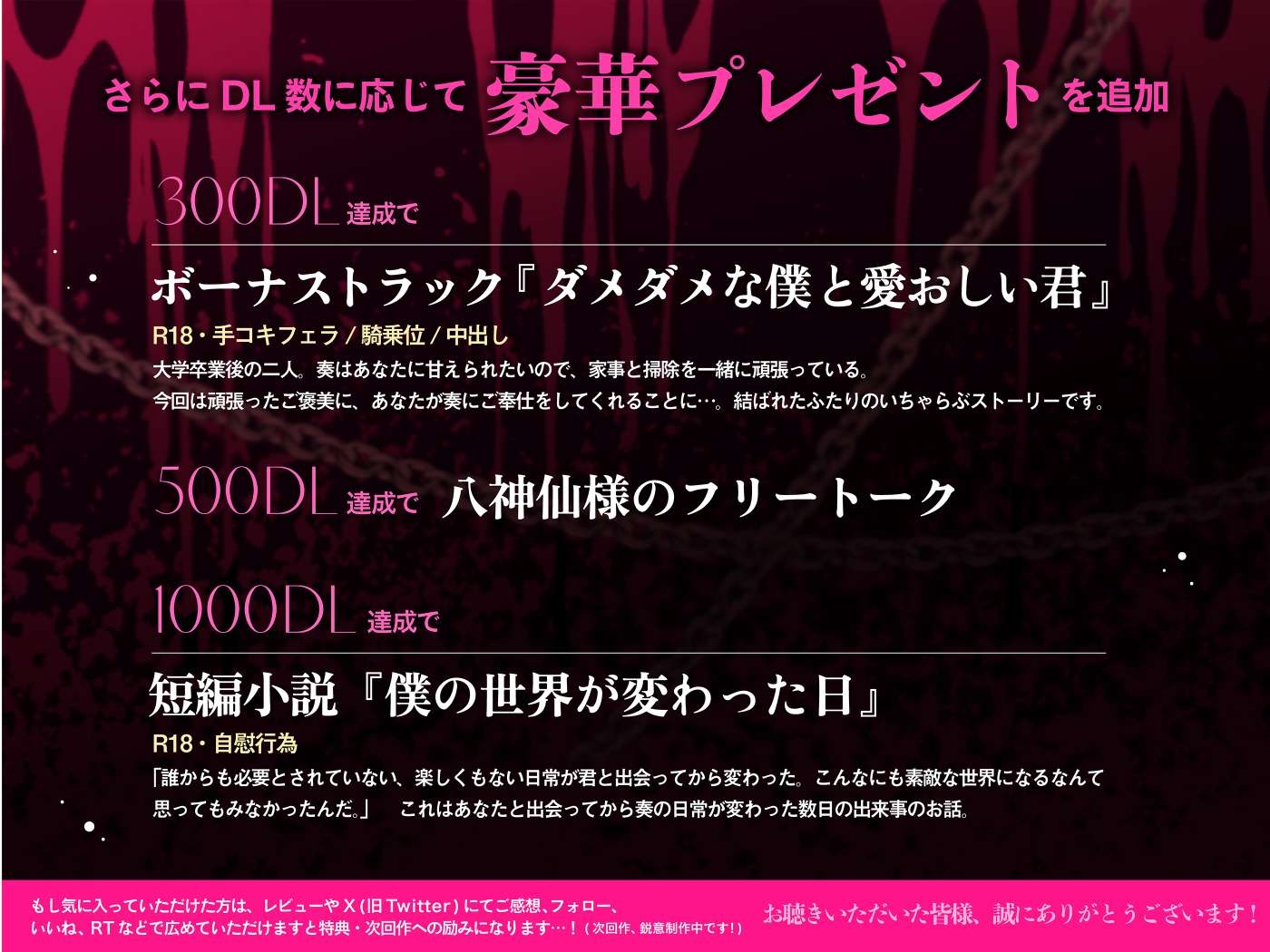 「ずぅっと生きてきていいことがなかったけど、君と出会ってから世界が変わったんだ……」奏の激重告白と熱意、とろけるほどの快楽により、あなたは彼の深すぎる愛情に囚われていきーー。