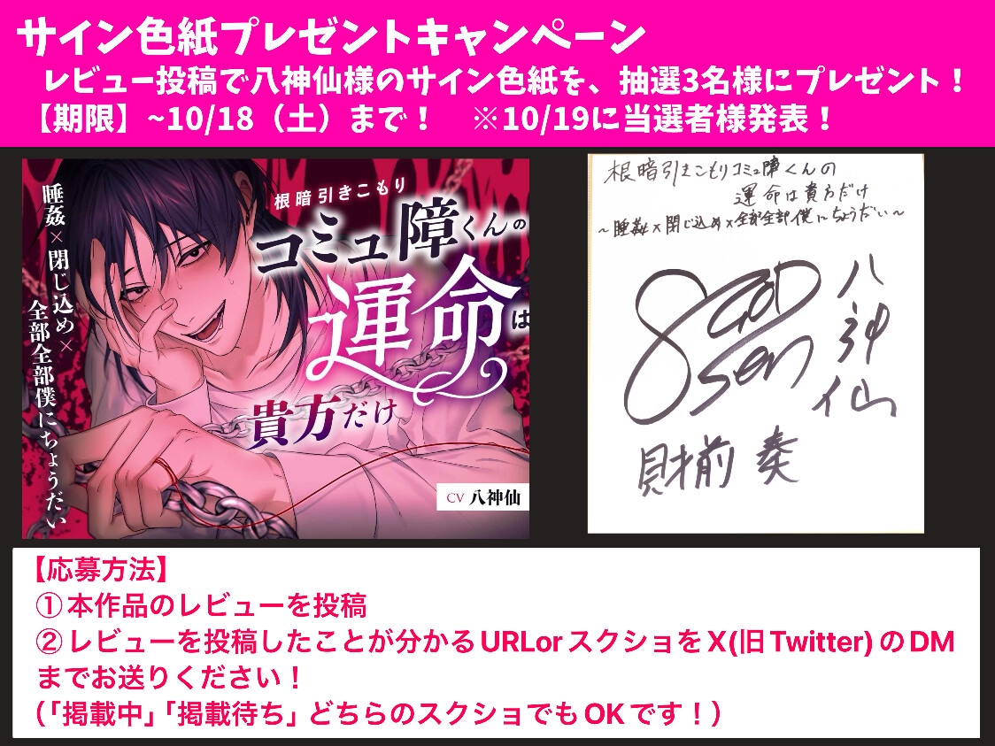 Xにて、本作品のレビューをしていただいた方の中から抽選3名様に、八神仙様のサイン色紙をプレゼント致します!