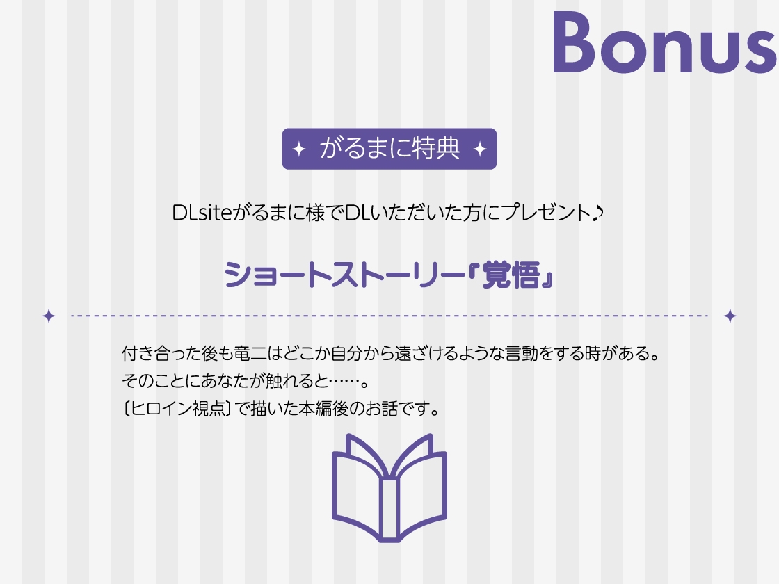 付き合った後も竜二はどこか自分から遠ざけるような言動をする時がある。そのことにあなたが触れると……。