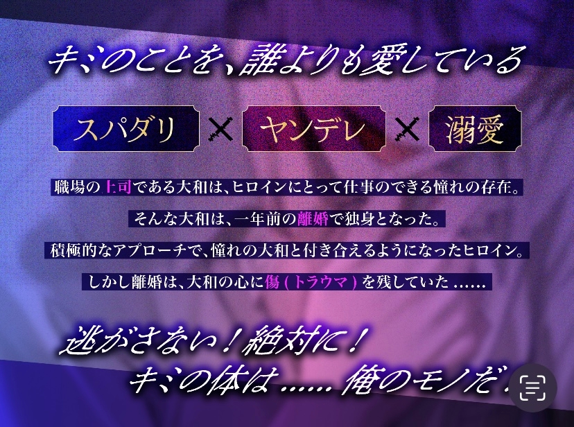 •【CV:八神仙】前妻の不倫でバツイチになった上司。私と付き合い出したら、なぜかヤンデレ化していくんですが?【スパダリ×ヤンデレ×溺愛】(RJ01535603)