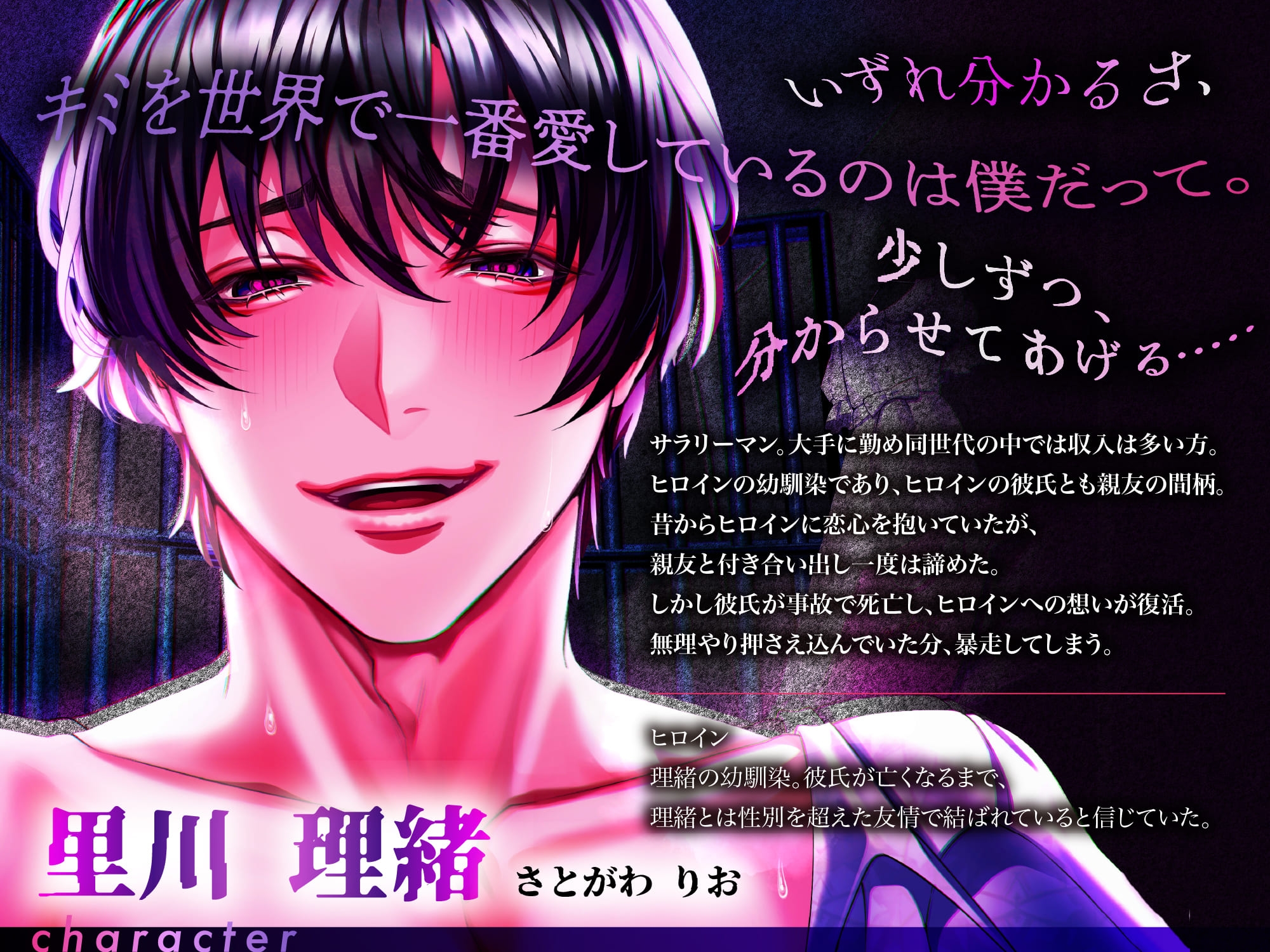 ・サラリーマン。大手に勤め同世代の中では収入は多い方。ヒロインの幼馴染であり、ヒロインの彼氏とも親友の間柄。昔からヒロインに恋心を抱いていたが、親友と付き合い出し一度は諦めた。しかし彼氏が事故で死亡し、ヒロインへの想いが復活。無理やり押さえ込んでいた分、暴走してしまう。 -