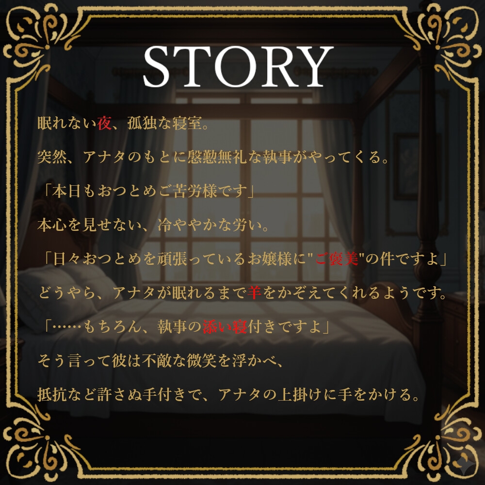 ![アナタが寝るまで事務的執事が添い寝しながら羊を数えてくれるだけの音声 [夕霧大将物語] アナタが寝るまで事務的執事が添い寝しながら羊を数えてくれるだけの音声 [夕霧大将物語]](http://img.dlsite.jp/modpub/images2/parts/RJ01566000/RJ01565399/4123e4324a030fee405cdb0b0758deaf.jpg)